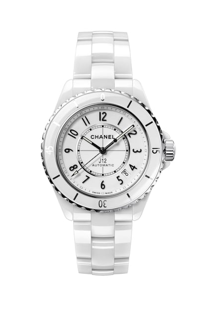 Tiene el encanto de lo atemporal y lo duradero. Con sus líneas elegantes inspiradas en los veleros de competición, el J12 es el primer reloj deportivo unisex de Chanel. Fabricado en cerámica ultrarresistente, permanece inmutable ante el paso del tiempo. En la parte trasera del reloj, el movimiento automático de Manufactura Calibre 12.1 es visible a través de un cristal de zafiro.