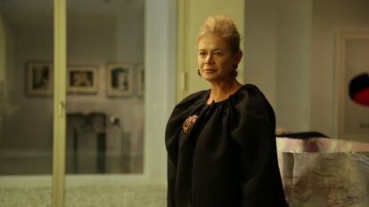 Detrás de la silueta erguida de Elena Ochoa, lady Foster of Thames Bank, descansa la obra del londinense Marc Quinn, creada a mano en su estudio de Londres para Ivorypress (la galería y editorial que fundó en 1996 la mujer del afamado arquitecto Norman Foster). Pintado sobre una larga franja de lienzo que acumula cinta de aluminio aeronáutica y pedazos de coral, la pieza se contrae como un acordeón como lo haría el meandro de un río o el movimiento del tiempo desde el anochecer hasta el alba. Thames River Water es su nombre, y rinde homenaje a la ciudad que ha coronado a la gallega como una de las mujeres más influyentes de la escena artística londinense. Tras pasar por la presidencia del consejo internacional de la Tate, flexibilidad, adaptación y perseverancia es lo que Elena Ochoa se ha impuesto para poder lidiar con su nuevo cargo al frente del consejo de Serpentine Galleries, una institución clave del arte contemporáneo en la capital, liderada por la rusa Yana Peel bajo la dirección artística del crítico suizo Hans Ulrich Olbrist. «Cada institución es un universo. Mi misión es definir claramente los pasos para ayudar al equipo directivo a conseguir a corto, medio y largo plazo los objetivos marcados. Es una ley universal y obligatoria a tener presente para todo presidente de un consejo que asume esta responsabilidad con una actitud realista. Como lo hice en la Tate, servicio del que me siento satisfecha». Lo relata con la pausa de una mujer expeditiva y calculadora que acumula muchas horas de vuelo por las altas esferas del arte dentro y fuera de la capital británica.