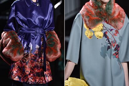 Nada es más aburrido que la obviedad (también cuando hablamos de materiales): «Al principio no quería utilizar pieles. Porque el pelo es un recurso fácil y efectista. Y el hilo de esta colección es mucho más sutil. Pero luego encontré una fábrica que nos permitía experimentar con el color. Y pasar de una paleta pastel a tonalidades vibrantes». La pigmentación es tan intensa que el reflejo tornasolado parece a veces incluso reflectante.
