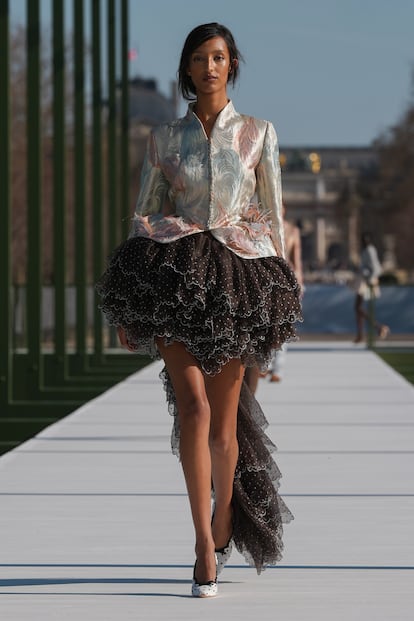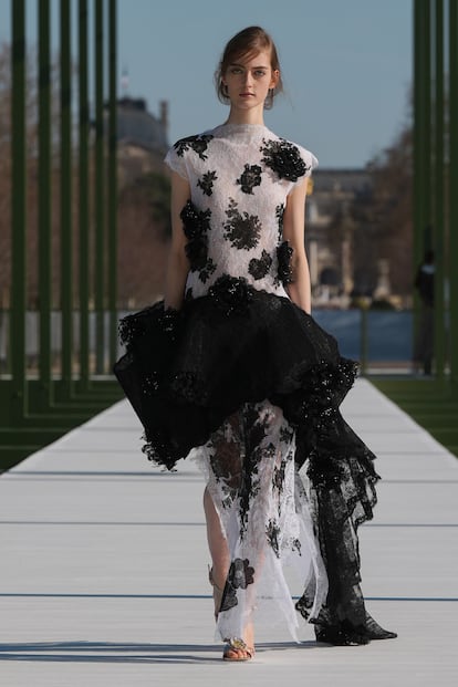 Para su segunda colección de ‘prêt-à-porter’ femenina, otoño-invierno 2026/27, el creativo transforma a la mujer flor que inspiraba al fundador de la ‘maison’ en materia prima de una propuesta contemporánea