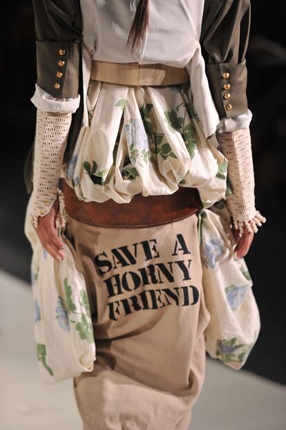 Con un container de retales amalgamados durante siete de años de ausencia – salvo un discreto inciso en 2009– volvía ayer Miguel Adrover a Nueva York. Este mallorquín que pasó de recoger almendras, cantar en Diabéticas Aceleradas y surcar el Amazonas a ganarse los favores de crítica e inversores americanos, ha volcado toda la subversión que tenía acumulada en un desfile de conciencia payesa y ramalazo contestatario.
