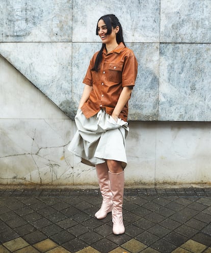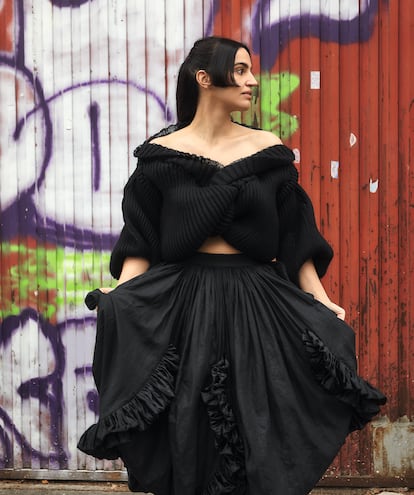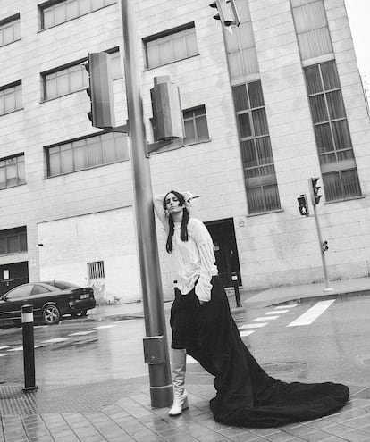 Tararea. Desde que llega a la sesión fotográfica Maria Arnal (Badalona, 39 años) pierde la mirada en el infinito y canturrea. “Mis padres siempre dicen que antes de empezar a hablar ya cantaba. A ellos les gusta mucho cantar y supongo que fue una manera de empezar a comunicarme. Primero vino el canto, después el habla”, razona. Dice que repetía en bucle la canción infantil El gegant del pi, que en su casa ella y sus tres hermanos oían mucho folk, músicas del mundo, canción de autor catalana... Su primer acercamiento a la música no dio frutos: “Con cinco años me apuntaron a una escuela, con una profesora muy estricta. Un día lloré mucho y nunca quise volver. Siempre pienso qué hubiera pasado si hubiera sido una buena profesora. Si me hubiera motivado, ayudado, en vez de moldearme desde el susto y la inseguridad. Sentí que la música no era para mí, porque la autoridad en ese espacio me había anulado. Nunca creí que podría tener la vida que tengo”.