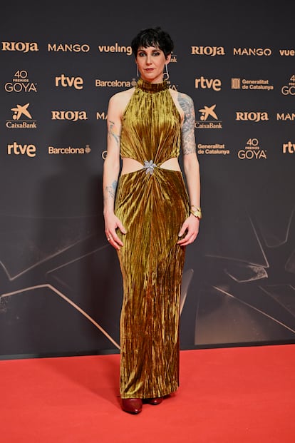 Belén Rueda se decantó por el blanco y lució un diseño con sobrecapa de Valenzuela Atelier, su firma de cabecera para este tipo de eventos.JOSEP LAGO (AFP via Getty Images)Hiba Abouk, destilando 'glamour' hollywoodiense con un vestido de archivo de Carolina Herrera de 2015.Carlos Alvarez (WireImage)La futbolista azulgrana Alexia Putellas lució un vestido negro de la primera colección de Pierpaolo Piccioli para Balenciaga.JOSEP LAGO (AFP via Getty Images)Irene Escolar también optó por el negro. Su vestido es una pieza de archivo de Giorgio Armani, de la colección otoño-invierno 2004, y lo combinó con joyas de Tiffany & Co. La intérprete triunfa en el teatro con 'Personas, lugares y cosas'.Europa Press News (Europa Press via Getty Images)La pareja formada por Luis Tosar, con traje de Pedro del Hierro y Luisa Mayol, con vestido negro de terciopelo de Michael Costello. El actor copresenta la gala con la cantante Rigoberta Bandini.Europa Press News (Europa Press via Getty Images)Rigoberta Bandini, copresentadora de la gala, a su llegada con su marido, Esteban Navarro. Ella, con un vestido de Rabanne, zapatos de Lola Cruz y joyas de La Manso, y él con un esmoquin clásico.Europa Press News (Europa Press via Getty Images)Toni Acosta escogió este diseño con escote asimétrico de Isabel Sanchis y joyas de Mumit.Carlos Alvarez (WireImage)La modelo y presentadora Nieves Álvarez, una habitual en la ceremonia de los Goya, con vestido de encaje blanco de Juana Martín.Europa Press News (Europa Press via Getty Images)Bad Gyal, una de las encargadas de poner música a la velada, con un sensual vestido ‘nude’ con cola de Ludovic de Saint Sernin.JOSEP LAGO (AFP via Getty Images)Almudena Amor, con un vestido lencero minimalista y satinado de Mango y el pelo suelto muy natural.Europa Press News (Europa Press via Getty Images)Mireia Oriol, con un palabra de honor rojo de archivo de Lanvin en la época en la que Alber Elbaz estaba a la cabeza de la firma, en 2012. Sus joyas, también de archivo, de Tous.Europa Press News (Europa Press via Getty Images)La televisiva Paula Vázquez, con un vestido de corte sirena azul, de Alejandro de Miguel.Europa Press News (Europa Press via Getty Images)La directora Carla Simón, que suma seis nominaciones a los Goya con 'Romería', sobria con un modelo negro de Teresa Helbig.Europa Press News (Europa Press via Getty Images)Ivana Baquero apostó por la teatralidad con este vestido con falda con vuelo de Isabel Sanchis y joyas de Rabat.Europa Press News (Europa Press via Getty Images)Marc Clotet y Natalia Sánchez, a su llegada juntos al evento. Él escogió una camisa transparente y ella un vestido blanco palabra de honor. Europa Press News (Europa Press via Getty Images)Julia de Castro, parte de la serie 'Poquita fe', con un 'slip dress' noventero con cortes laterales. Se trata de una creación 'vintage' de Sybilla, del año 1998.Europa Press News (Europa Press via Getty Images)La modelo Laura Ponte, con traje blanco de Mango.Europa Press News (Europa Press via Getty Images)María Pedraza también llevó un traje de Mango, en su caso negro y con corbata.Europa Press News (Europa Press via Getty Images)Susi Sánchez puso una nota de color con este conjunto en distintas tonalidades de verde de Sybilla.Europa Press News (Europa Press via Getty Images)La mexicana Jaydy Michel tampoco se perdió la cita con el cine español. Acudió con un vestido con transparencias de Ze García.Carlos Alvarez (WireImage)La cantante Belén Aguilera, una de las intérpretes de la gala, apostó por las transparencias con vestido de Bonet Studio, zapatos de Alexander McQueen y joyas antiguas de Sardinero. Europa Press News (Europa Press via Getty Images)Arturo Valls, con un esmoquin de chaqueta blanca de Fursac.Europa Press News (Europa Press via Getty Images)La actriz Maggie Civantos, con vestido de Andrew Pocrid y joyas Del Páramo Vintage.Europa Press News (Europa Press via Getty Images)Zoe Bonafonte, actriz de ‘El 47’, con vestido de corte columna y con sobrefalda de tul de Inma Linares y joyas de Messika.Europa Press News (Europa Press via Getty Images)Catalina Sopelana, con un vestido palabra de honor con cuerpo 'peplum' de Maison Rabih Kayrouz y joyas de Bvlgari.Europa Press News (Europa Press via Getty Images)Jedet, también de blanco con un vestido de Joaquín Serra y complementos de Santa Joyas.Europa Press News (Europa Press via Getty Images)Tamar Novas, nominado a mejor actor de reparto por 'Rondallas', de negro riguroso con un conjunto de MM6 Maison Margiela, zapatos de Christian Louboutin y joyas de Cartier.Europa Press News (Europa Press via Getty Images)Jan Monter, nominado a mejor actor revelación por 'Estrany riu', con una casaca de Dior, diseño de Jonathan Anderson.Europa Press News (Europa Press via Getty Images)La directora de 'Sorda', Eva Libertad, con vestido de Ramil y Pujalte y chapa apoyando a Palestina. Nominada en la categoría de dirección novel, a mejor guion adaptado y mejor película.JOSEP LAGO (AFP via Getty Images)Alfonso Bassave, de riguroso negro con traje de Scalpers.Pablo Cuadra (Getty Images)La cantante Ángeles Toledano, una de las actuaciones de la ceremonia, con vestido bicolor de Victoria Cimadevilla y joyas de Del Páramo Vintage.Europa Press News (Europa Press via Getty Images)La actriz Greta Fernández también se decantó por el binomio blanco y negro con un vestido de Jacquemus que completó con joyas de Tous.Europa Press News (Europa Press via Getty Images)Nathalie Poza también jugó con el blanco y negro con este diseño de Isabel Sanchis.Europa Press News (Europa Press via Getty Images)La cantante Alba Molina, protagonista de una de las actuaciones de la noche, junto a su hija Lucía Cepeda. Molina luce un vestido de Kelvis Casillas y joyas de Carrera y Carrera.Europa Press News (Europa Press via Getty Images)La modelo Vanesa Romero brilló con un diseño exclusivo de Rubén Hernández Costura.Europa Press News (Europa 