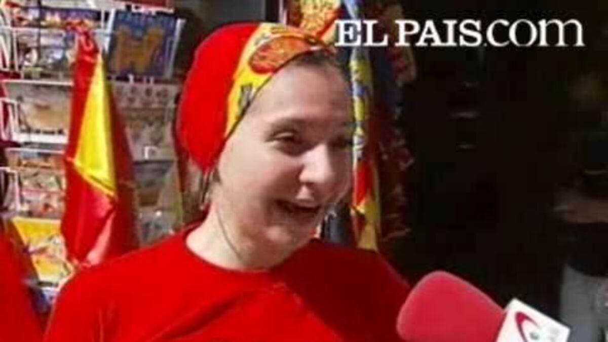 Gorros, pulseras, llaveros y camisetas con 'La Roja', amuletos para conjurar la buena suerte en la final