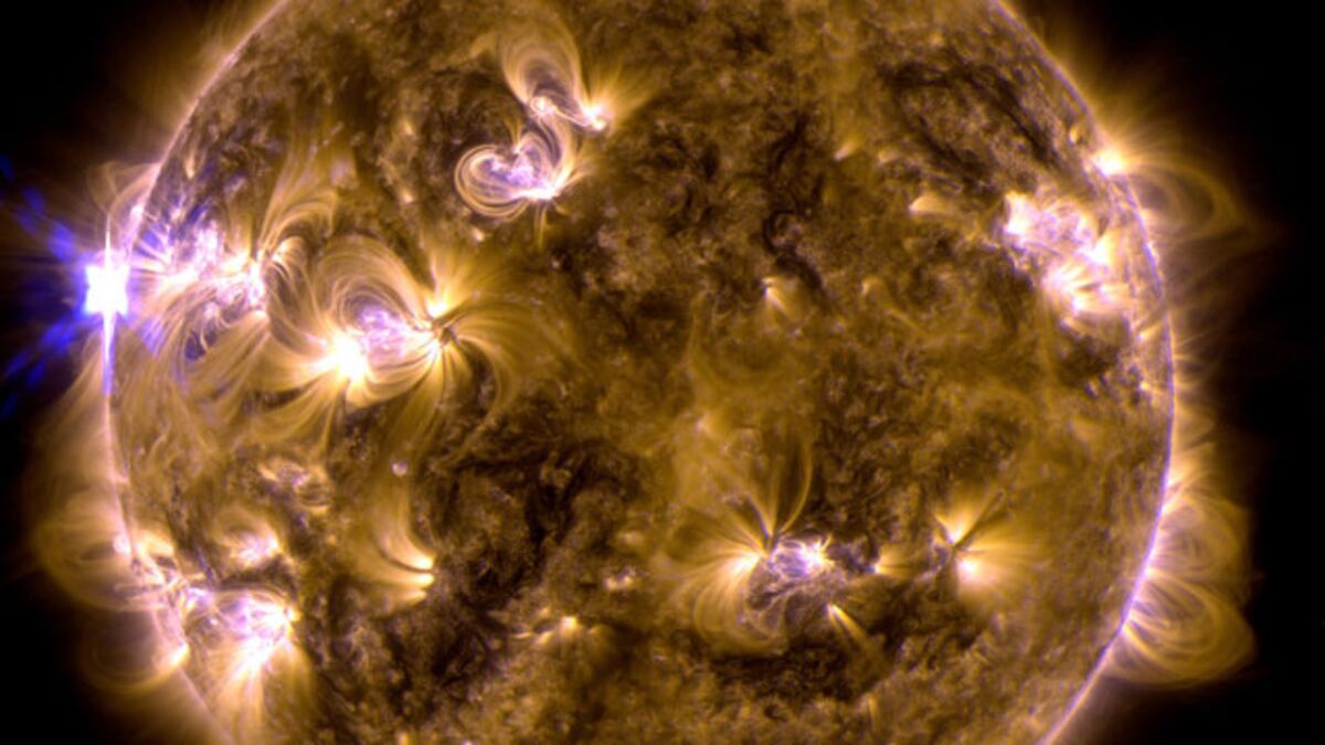 La mancha solar donde ocurren estas erupciones todavía no encara la Tierra, y los fenómenos fueron captados en cámara por el Observatorio de Dinámica Solar de la agencia espacial estadounidense NASA.