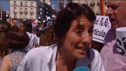 A la llegada de la marcha a la Puerta de Alcalá, donde se ha producido al menos una lipotimia por el calor, han intervenido Paulino Cubero, director de un centro de salud de Carabanchel (Madrid) y Víctor Gutiérrez-Millet, nefrólogo del hospital 12 de Octubre y uno de los centenares de médicos que fueron jubilados forzosamente y por sorpresa a finales de abril pasado. “Esta lucha no es de derechas ni de izquierdas, es de todos los ciudadanos”, ha asegurado Gutiérrez-Millet.