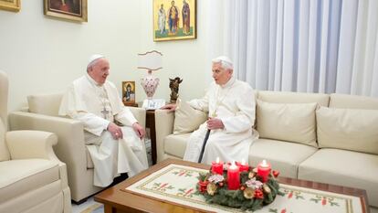 El papa Francisco visita a Benedicto XVI para felicitarle la Navidad