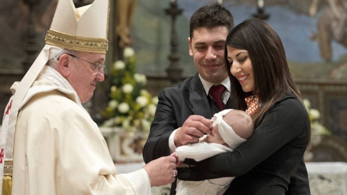El papa Francisco bautiza a la hija de una pareja casada por lo civil