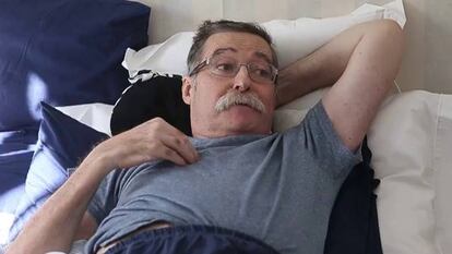 “Menos mal que hace ya muchos meses nos hicimos toda la familia de DMD”. Adquiere un tono profesoral cuando habla de esta asociación. “Tienen todo mi reconocimiento por luchar por lo que luchan. Frente a ministros como el de Interior, que fían en santa Teresa para arreglar los problemas”, ironiza sobre la reciente apelación a la santa de Jorge Fernández Díaz para que ayude a España en estos “tiempos recios”. “Ellos trabajan por la gente, por los derechos de todos”, dice. “Y todavía hay gente, como el exportavoz de Aznar, Miguel Ángel Rodríguez, que llamaba nazi a [Luis] Montes”, médico de la asociación que fue juzgado —y absuelto— por el caso de las sedaciones de Leganés. “Me dan ganas de ponerme bueno solo para coger un palo e ir a verle”, dice indignado.