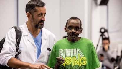 "Tenemos que mejorar la posición del ojo izquierdo, que es protésico. Y la dentadura no se la hemos colocado porque no nos ha dado tiempo. Lo hemos retenido en el hospital todo lo que hemos podido, pero quiere regresar a su país cuanto antes para ayudar a mantener a su familia. Volverá esta semana". Su familia no ha visto todavía imágenes de su nueva cara, con la que según ha explicado el médico, vuelve a reconocerse cuando se mira en el espejo.