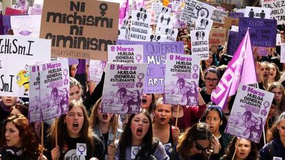 Las estudiantes lideran en las calles la protesta feminista del 8 de marzo