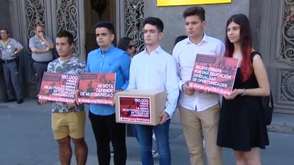 Cinco estudiantes han entregado este lunes en el registro del Ministerio de Educación 178.000 firmas para pedir una Selectividad única para toda España, que evite diferencias de dificultad entre las comunidades autónomas.