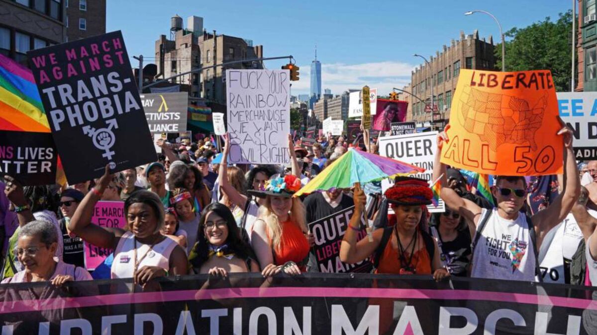 El activista Jay Toole, de 71 años, que participó en los disturbios de 1969, ha decidido boicotear la marcha oficial. "Aquí estuve la primera noche y no fuimos solo un puñado de gente blanca. Había gente de color, transexuales... No contábamos con un término para eso entonces, pero, créame, ahí estuvimos", ha dicho. En la marcha alternativa se han visto pancartas con lemas críticos, como "mi orgullo trans no es marketing" y "descolonizad el orgullo".