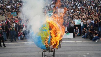 Como si fuera una balanza, en un momento en el que el liderazgo de los mandatarios en la lucha internacional contra el cambio climático decae las calles de medio planeta se llenan de protestas en las que se pide afrontar esta crisis con medidas ambiciosas. Como ya ocurrió en marzo, cuando los estudiantes convocaron la primera huelga mundial por el clima, decenas de ciudades de todo el mundo –entre ellas Madrid y Barcelona y las principales ciudades del país– han sido tomadas por centenares de miles de manifestantes este viernes. Pero en esta ocasión la protesta ha trascendido a los chicos y en muchos lugares ha sumado a los adultos a través de asociaciones, ONG, sindicatos... O, simplemente, ciudadanos preocupados que no pertenecen a grupo alguno.