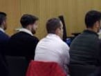 Tras las declaraciones del médico forense y de la psicóloga que atendió a la víctima después de tener conocimiento por la Policía Foral navarra de lo que le había pasado, el tribunal vio, a puerta cerrada, los vídeos que los cuatro jóvenes tomaron de los tocamientos y que después difundieron en dos chats de WhatsApp, precisamente el mismo día en que se ha conocido la condena a tres años de cárcel y 5.000 euros de multa para Guerrero y a Cabezuelo por grabar la agresión sexual de los sanfermines. La sentencia ha sobrevolado toda la sesión, en la que, por primera vez, los acusados fueron reprendidos por el juez por los gestos y comentarios que estaban realizando durante la declaración de uno de los agentes.