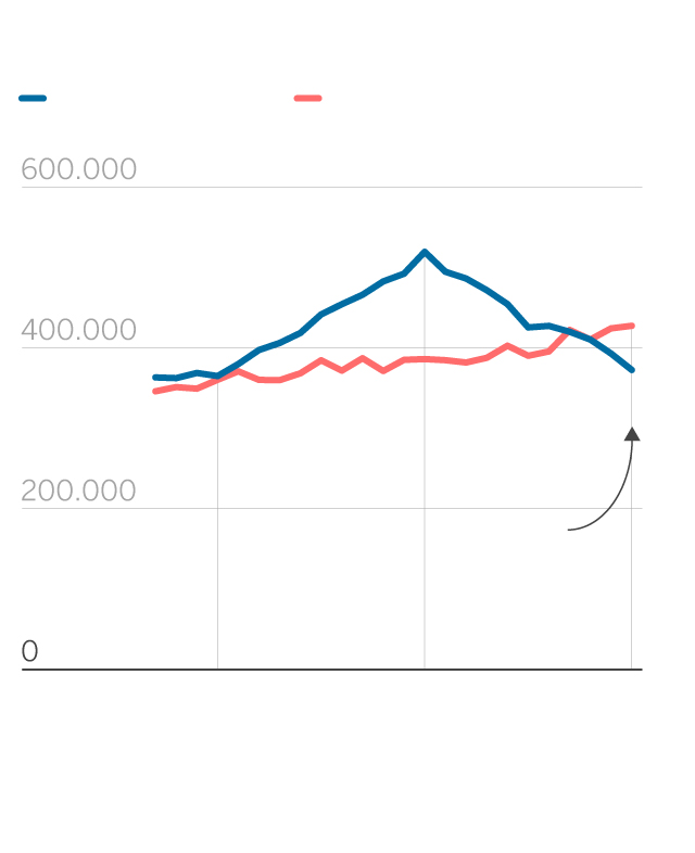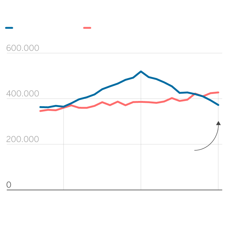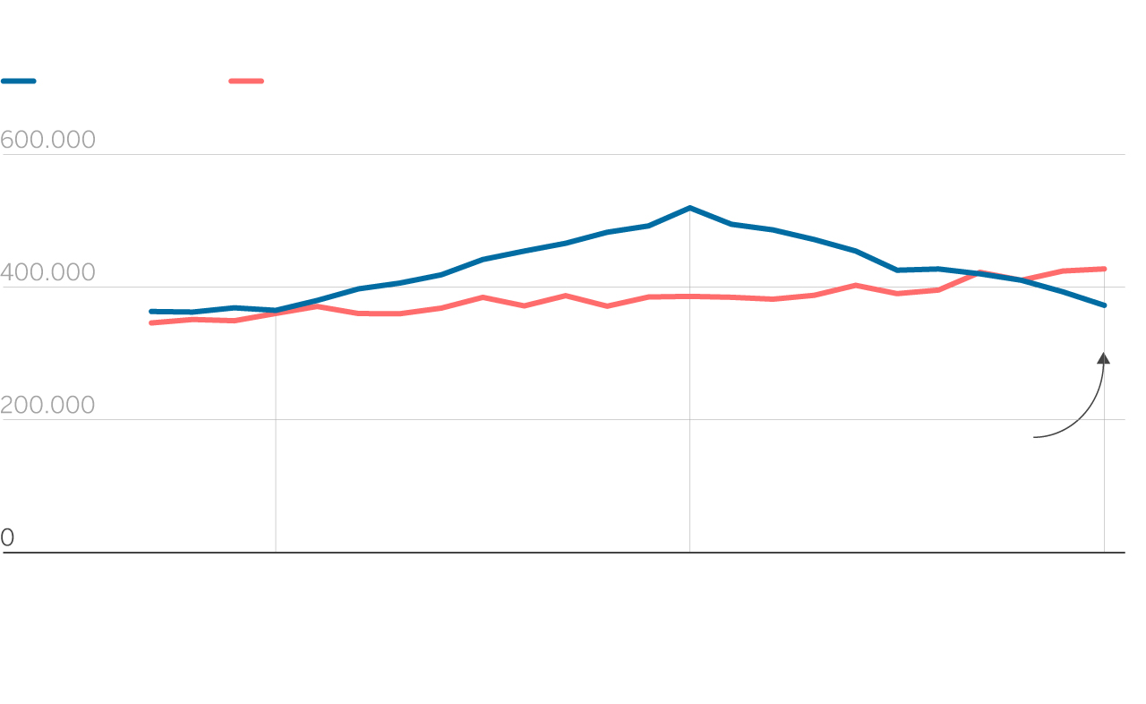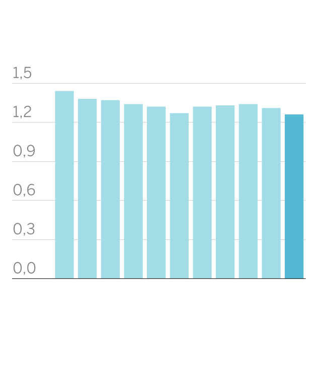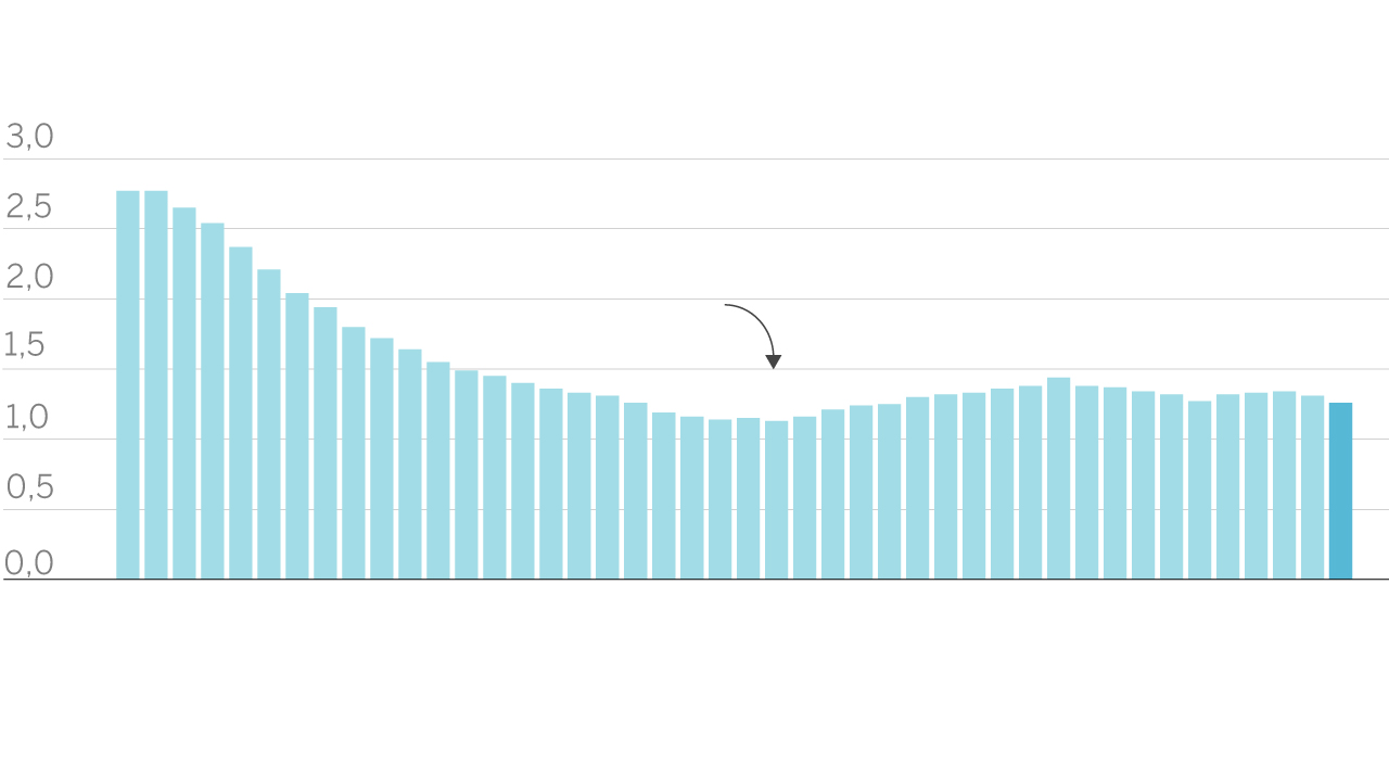 La cifra más baja de nacimientos. Cae a la mitad desde los años setenta y un tercio en la última década