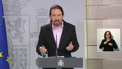 Iglesias ha asegurado este jueves que el Gobierno “ha aprendido de los errores de 2008” para hacer frente a esta nueva crisis. “España ha decidido dejar atrás los dogmas de la austeridad fiscal y en esta ocasión apuesta por afrontar esta crisis de la manera opuesta”, ha dicho en una rueda de prensa junto al ministro de Sanidad, Salvador Illa.