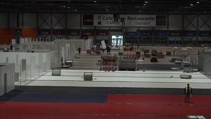 Hasta el domingo han fallecido más de 1.000 personas en la región. Este viernes, las UCI de varios hospitales de Madrid ya estaban al doble de su capacidad con pacientes de coronavirus y se repartía a enfermos críticos por otras unidades como Reanimación y en quirófanos sin uso, al haberse suspendido las operaciones programadas. La pandemia del coronavirus y la saturación del sistema sanitario ha obligado a la Comunidad de Madrid a improvisar en pocas horas un centro de emergencia en los pabellones 7 y 9 del recinto ferial, con ayuda de la Unidad Militar de Emergencias (UME). En una primera fase, acogerán 1.300 camas convencionales y 96 de UCI, explica el Gobierno regional en una nota. El acceso oeste del recinto ferial será empleado por tráileres que hacen frente a las necesidades logísticas.