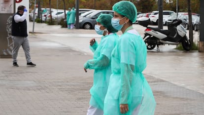 Pasados más de 10 días de pandemia, el Ministerio de Sanidad empieza a desvelar parte de la magnitud de uno de los problemas más preocupantes causados por el coronavirus: unos 4.000 sanitarios han caído contagiados. El dato, que supone un 12% del total de enfermos en España, no incluye todas las bajas que han puesto al límite a las plantillas hospitalarias. También están apartados del servicio, en aislamiento por sospecha de infección, un número importante de médicos y enfermeras que Sanidad eludió este lunes facilitar. “Las PCR están tardando ocho días, así que a veces el sanitario está aislado en casa y otras, si no se ha tenido contacto estrecho con un infectado, sigue trabajando con síntomas”, alerta Victoria Velasco, portavoz de salud laboral de la Asociación de Médicos y Titulados Superiores (Amyts) de Madrid.