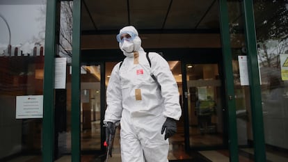 Dos trabajadores de una residencia del distrito madrileño de Usera han confirmado a EL PAÍS que la UME halló el domingo por la mañana, cuando fue a desinfectar el centro, el cuerpo de un anciano que había fallecido el día anterior. El cadáver estaba solo en la habitación. “Estuvo allí desde primera hora de la tarde. Llegué por la noche y por la mañana a las ocho seguía allí”, ha explicado José Manuel Martín-Lopi, recepcionista del centro. Una auxiliar de enfermería que prefiere no identificarse asegura que el cuerpo se retiró sobre las 11.30. “Normalmente, se tardan unas dos horas, entre que se hace el papeleo y se avisa a la familia. En este caso no fue así”, continúa Martín-Lopi. Una portavoz de la empresa ha asegurado que en todo momento se cumplieron los protocolos “a rajatabla” y que el fallecido no se podía mover, porque seguía siendo foco de contagio, hasta que llegara la funeraria.