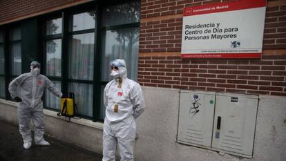 La orden de Sanidad reitera además que los centros desbordados deben pedir auxilio urgente si no pueden cumplir con el protocolo, especialmente en lo relativo a aislamiento. O si no pueden gestionar los cadáveres. “Aún tenemos que conocer los detalles, pero todo lo que ayude a paliar la situación actual será bueno. Las plantillas, que cobran sueldos pobres, están sobrepasadas, esforzándose muchísimo, hay problemas para contratar. Nadie quiere trabajar aquí”, lamentaba este martes María Victoria Gómez, responsable de Negociación Colectiva de la Federación de Sanidad de CC OO. “La situación es dramática”.
