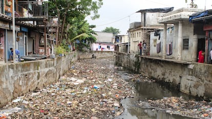 Salvo la incertidumbre, el coronavirus poco ha cambiado la rutina de este enjambre de callejas y casas sin ventanas en el que se amontonan 8.000 familias jornaleras en la superficie de un estadio de fútbol. Entre las 10 y las 12 de la mañana, hora del suministro de agua, las mujeres esquivan los meandros de desechos con sus cántaros a la cabeza mientras otros se apelotonan en los 20 urinarios públicos que hay. “Estamos intentando seguir las medidas de higiene. Pero quedarnos en casa no es una opción. No podemos vivir si no es en las calles”, asegura Govind, que le contesta a la policía local cuando les mandan a casa a golpes.