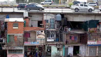 A las cuatro de la tarde, en la 31, hay niños que juegan en las plazas y corren por sus pasillos estrechos y llenos de cables. En la villa miseria más céntrica de Buenos Aires, las familias están sentadas en la puerta de su casa a medio construir, bajo la autopista. Las personas se abrazan por la calle y otras cuchichean o se ríen, sin respetar el metro y medio de distancia social. Hay pequeñas tiendas de ropa, peluquerías, ferreterías y restaurantes abiertos. No hay silencio, suena cumbia. A dos semanas de la cuarentena obligatoria decretada por el Gobierno argentino por el coronavirus, a simple vista parece que en este barrio de 65.000 habitantes la vida transcurre con normalidad, pero no es así.