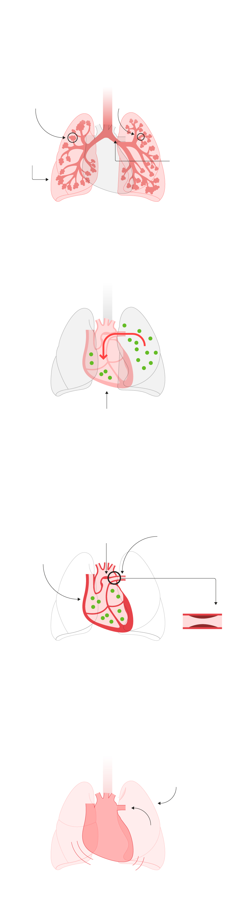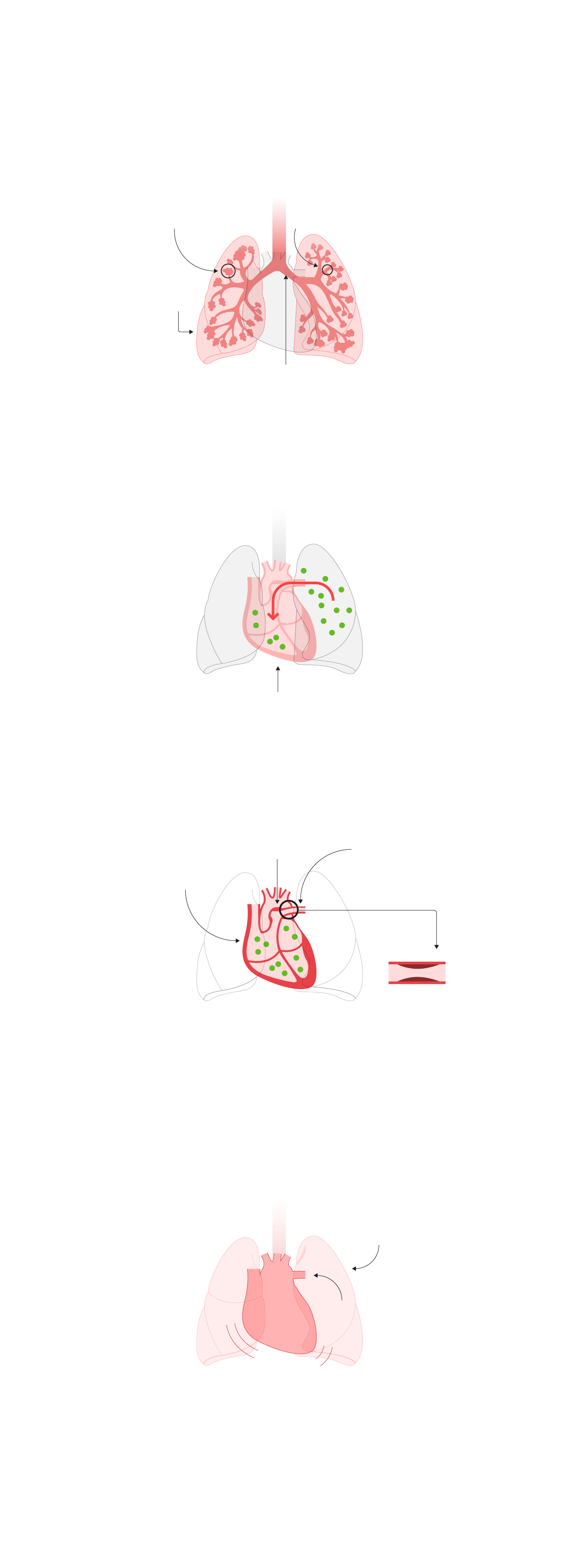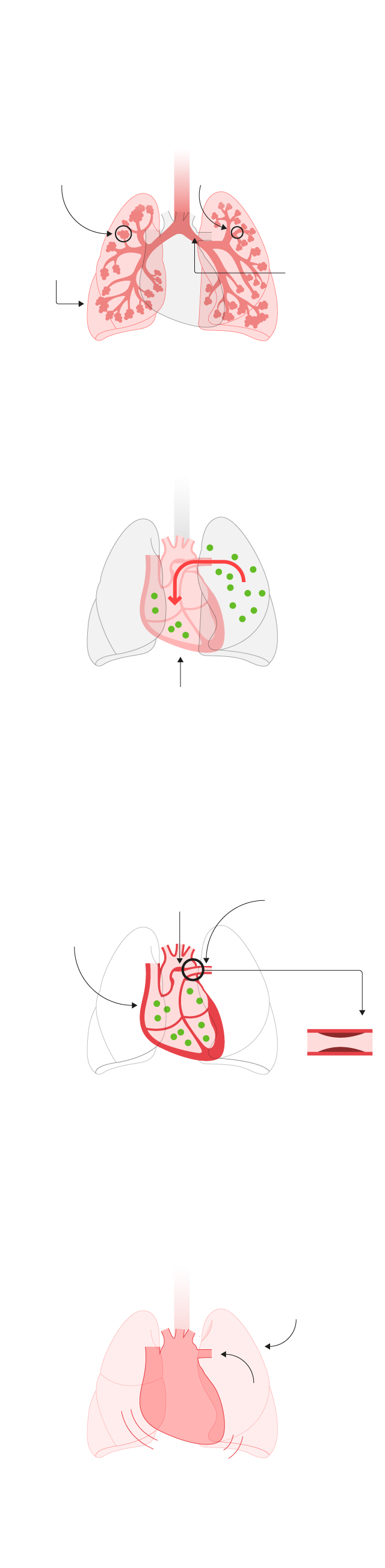 Al inflamarse el pulmón oxigena peor. Para compensarlo, el corazón bombea más deprisa. Se produce un estrés que lo daña.