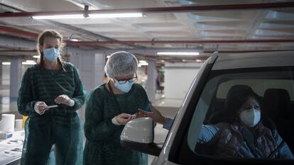 Los test no son obligatorios, pero ya se han inscrito el 60% de los ciudadanos, según el Ejecutivo andorrano, y con la previsión de que pueda llegar al 70%. Royo comenta que han tomado nota de los modelos llevados a cabo en Islandia y en Singapur. Islandia, el Estado que ha desarrollado más test por cada mil habitantes del mundo, según la OCDE, ha llegado con las pruebas a un 13% de la población. El plan andorrano funcionaba el lunes como un reloj: los participantes se personaban en los centros de análisis designados, denominados Stop Labs, a la hora indicada, la gran mayoría con su vehículo particular y con el grupo de personas que conviven en el mismo domicilio. Primero se confirmaba la identidad de las personas y luego, sin salir del coche, se les extraían las gotas de sangre que se introducen en las casetes de detección de inmunoglobulina G e inmunoglobulina M. La G es la que permite saber si un individuo ha tenido la covid-19 y la M es la que indica si está actualmente contagiado. La banda sonora era el pitido constante de los cronómetros que en cada mesa avisaban del final de la prueba. En caso de detectarse inmunoglobulina M se realizará al afectado, en cuestión de horas, una prueba PCR —la que expone la presencia de material genético del virus— para confirmar el resultado. Si vuelve a dar positivo, la persona infectada y los que están en contacto con ella se aislarán en cuarentena.