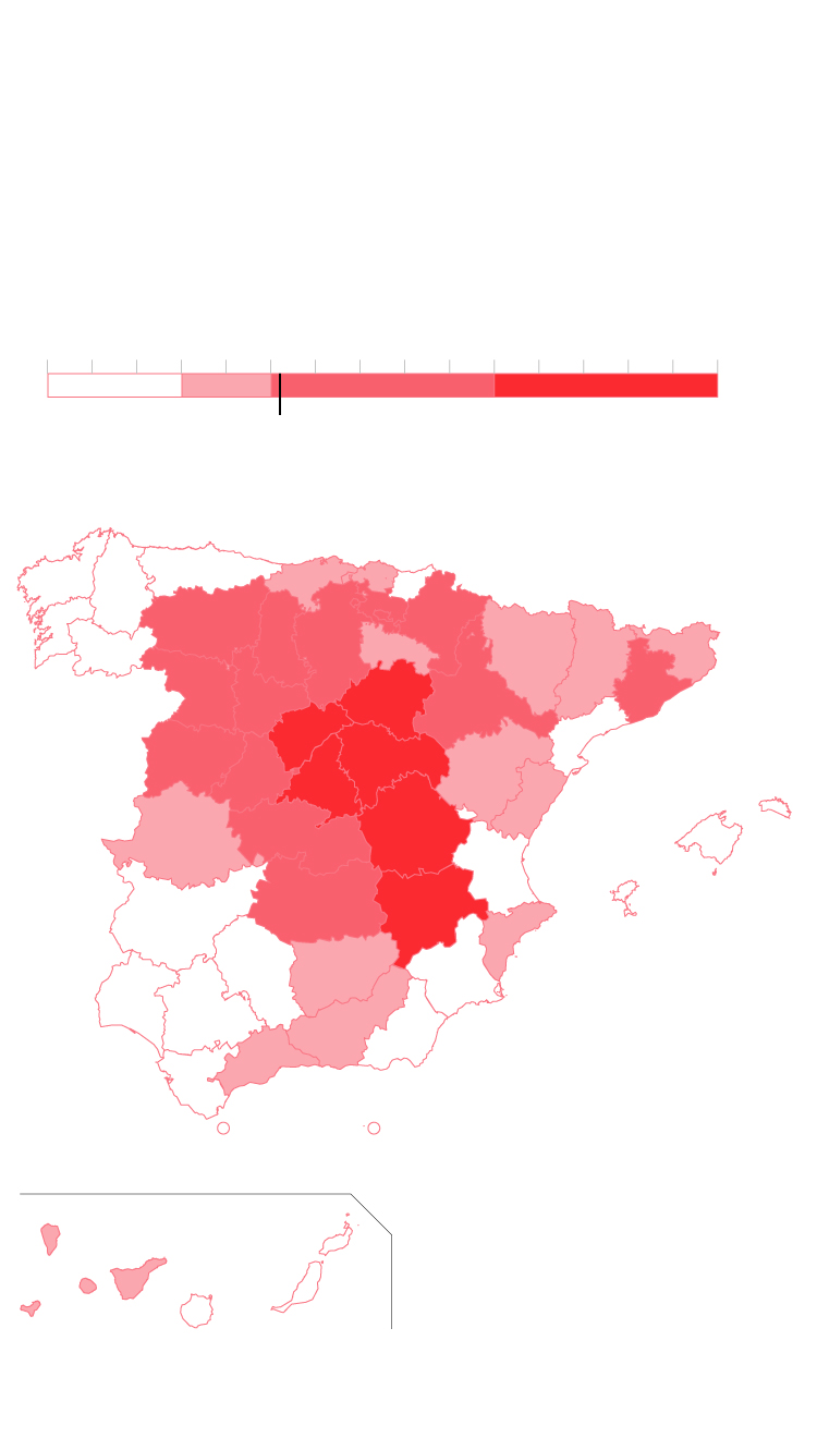 El trabajo recoge, por primera vez, la proporción de seroconvertidos, personas que en la primera oleada de la encuesta dieron negativo y en la segunda ya sí presentan anticuerpos contra el virus, lo que muestra una infección reciente. La media española está en el 0,8%, pero ese porcentaje es llamativamente superior en algunas provincias del centro y la mitad norte de la Península. Así, en Ávila, Valladolid y Palencia se acercan al 2% y en Madrid, Soria y Segovia es del 1,5%.