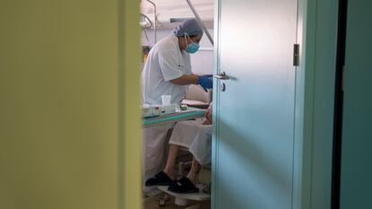 Apenas tres meses después de los primeros casos, este centro sanitario empieza a respirar. Quedan seis pacientes con covid-19 ingresados en planta y uno en la UCI. Las consultas externas se han retomado y los quirófanos están abiertos. En Urgencias, entran y salen ambulancias con enfermos y varios pacientes aguardan su turno en la sala de espera. “La gente empieza a venir. Tenía mucho miedo a contagiarse”, admite García. En el acceso a las consultas, esperan, en rigurosa fila india, mascarilla en boca y guardando la preceptiva distancia de seguridad, otra decena de pacientes. La vida continúa, también en el hospital de Igualada.