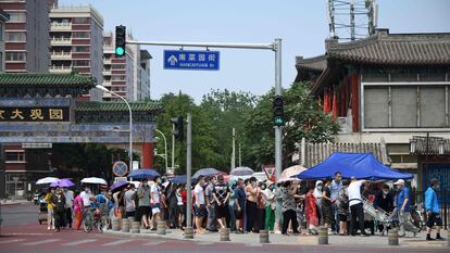 “¡Mis verduras las traigo yo de Hebei! ¡Nada de coronavirus!”, tranquiliza Zhou, un energético vendedor en uno de los puestos del mercado matutino de Chaoyang, en el centro de Pekín. Este mercado al aire libre ha instalado nuevas vallas y un sistema de cámaras térmicas para controlar a los clientes que quieran entrar. Varios trabajadores sociales, del ejército de 100.000 que ha reclutado esta semana el Gobierno municipal, vigilan que se mantenga la distancia de un metro en la cola de acceso y escudriñan los códigos QR en los móviles de los visitantes: solo si muestran el verde que denota estar sano se les franqueará la entrada. Las esperas se toman con filosofía: “Ya estábamos acostumbrados. Esperemos que controlen el virus pronto y podamos superar esta situación rápido”, explica el señor Xu, un jubilado de 67 años.
