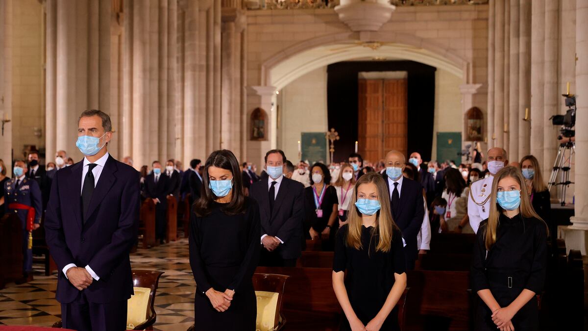 Además de la Familia Real al completo (el Rey, la Reina, la Princesa de Asturias y la infanta Sofía, todos de riguroso luto), han asistido la vicepresidenta primera Carmen Calvo; las presidentas del Congreso y el Senado, Meritxell Batet y Pilar Llop; los presidentes del Tribunal Constitucional y el Supremo, Juan José González Rivas y Carlos Lesmes; el presidente del PP, Pablo Casado; la presidenta de la Comunidad de Madrid, Isabel Díaz Ayuso; el alcalde de la capital, José Luis Martínez-Almeida; y el jefe de la cúpula militar, Miguel Ángel Villarroya, entre otras autoridades, además de familiares de los fallecidos y representantes de ONG como Cáritas. Todos los asistentes llevaban mascarilla y se han dejado huecos en los bancos para garantizar la distancia social, además de tomar medidas profilácticas, como entregar en mano la hostia consagrada al comulgante.