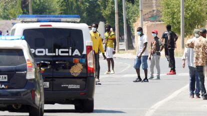 La mesa estaba servida para el descontento: 500 personas, confinadas, en una fábrica abandonada, en malas condiciones y con un termómetro que llegaba a los 34 grados. Cerca de un centenar de temporeros que residen en un asentamiento irregular a las afueras de Albacete, con restricciones de movilidad desde el viernes por un brote de covid-19 con 21 contagios, se saltaron este domingo el confinamiento para protagonizar una protesta. Los manifestantes cortaron la circulación de una de las principales arterias de la localidad castellanomanchega. La Policía Nacional, que pidió refuerzos de otras provincias cuando los ánimos estuvieron al máximo, vigila la zona para que se cumplan las medidas de aislamiento. El Ayuntamiento anunció el cierre de la nave industrial y buscará un lugar distinto para aislar a los inmigrantes.