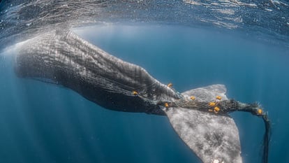 Fernández Caballero, campeón mundial de fotografía submarina y con permiso del Miteco para sacar fotos en el Estrecho, es un fiel testigo del deterioro marino. “Tomo imágenes submarinas desde niño con mi padre y lo que veo es que cada vez hay más basura, plásticos, redes... Pero la experiencia con el cachalote ha sido con diferencia lo más triste que he vivido nunca”, relata. Como ejemplo del deterioro marino relata que, “hace tres días”, en una zona de inmersión en Ceuta se topó con una red en el arrecife de gorgonias con peces enganchados. “Son redes con las que no se está pescando y que están matando a animales y seres vivos sin control”. Al día siguiente de localizar a Toño, Carpinelli se topó con una red de “por lo menos 15 metros” en una roca en la isla de Tarifa. “Si alguien ve algo así que no le dé la espalda, que llame a Emergencias 112 y se evitará que la red atrape a alguna tortuga, ballena o delfín”.