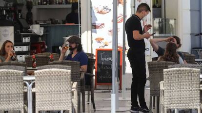 Tiendas, bares y restaurantes. Tiendas, locales de hostelería y de apuestas podrán trabajar con un aforo máximo del 50% (tanto en interior como en exteriores); el horario de cierre será a las 22.00 para los comercios y a las 23.00 para la hostelería a excepción de servicios de entrega de comida a domicilio, y no se podrán admitir nuevos clientes desde las 22.00. “El consumo en barra no estará permitido”, recoge el documento. En todos los casos, “las mesas o agrupaciones de mesas deberán guardar una distancia de, al menos, 1,5 metros”, respecto a las sillas asignadas a las demás mesas o agrupaciones de mesas, y tener una ocupación máxima de seis personas.