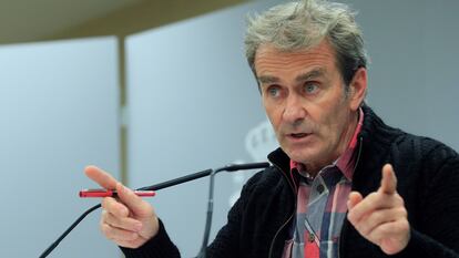 Fernando Simón, director del Centro de Coordinación de Alertas y Emergencias Sanitarias (CCAES), ha reconocido este lunes que España no está evolucionando “todo lo bien que nos gustaría”. La semana pasada había hablado de la estabilización de la pandemia. Este lunes ha calificado la incidencia de “muy alta” y ha dicho que hay “una pequeña tendencia ascendente” similar a la que se está registrando en el resto de Europa. Sin embargo, ha subrayado que el incremento de los casos ha sido lento y progresivo en España, mientras la dinámica de otros países ha sido de multiplicar los contagios por dos o por tres en cuestión de dos semanas. “Me gustaría pensar que nosotros iremos más despacio”, ha dicho, dando por hecho que los contagios seguirán creciendo. “Es esperable que en invierno, si no tenemos en cuenta las medidas de prevención, tengamos un aumento de la incidencia”, ha añadido.