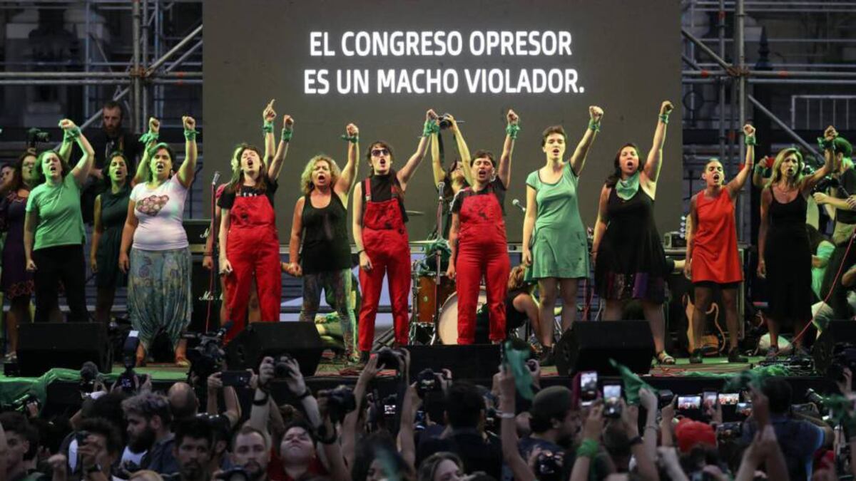 "El patriarcado es un juez,/ que nos obliga a parir/ y nuestro castigo/ es la violencia que ya ves./ Es femicidio./ Maternidad como destino./ Es violación./ Es aborto clandestino", dice la letra adaptada con la colaboración de la escritora argentina Claudia Piñeiro. "El violador sos vos, el opresor sos vos. El aborto será ley, el aborto será ley, el aborto será ley", continúa. Miles de personas la cantaron este miércoles frente al Congreso argentino y después agitaron al aire los pañuelos verdes, convertidos en un símbolo de quienes defienden la interrupción voluntaria del embarazo.
