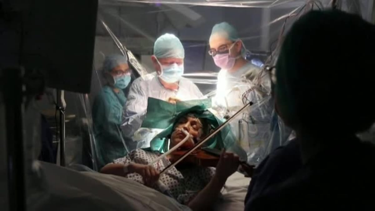 Una mujer toca el violín mientras le extirpan un tumor cerebral