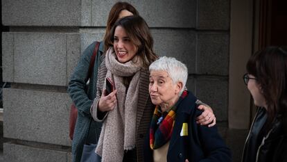 La ministra de Igualdad, Irene Montero, junto a la directora general de Diversidad Sexual y Derechos LGTBI del Ministerio de Igualdad, Boti García Rodrigo, a la salida del Congreso de los Diputados este miércoles. Foto: FERNANDO VILLAR (EFE) | Vídeo: EPV