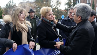 Mientras los obispos votaban a sus líderes dentro de la sede de la CEE, en Madrid, un grupo de víctimas se manifestaba por segundo día consecutivo a sus puertas. Siguen con pancartas reclamando justicia y responsabilidades a la jerarquía eclesiástica. Supieron los resultados por los medios. “Ninguna sorpresa con la elección de Argüello. Aunque por lo menos han elegido también a Cobo. A ver si hace algo”, dice Juan Cuatrecasas, padre de una víctima y miembro de la Asociación Nacional Infancia Robada (ANIR).