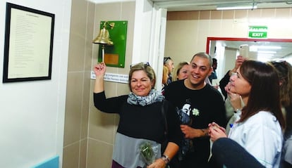 El legado y deseo de Miriam, a menudo desconocido entre aquellos que padecen cáncer, ha podido llegar a muchos pacientes, que han podido tocar la campana gracias a la iniciativa recuperada por su madre. Una de ellos es Recuerdo Arroyo, paciente del hospital Clínico San Carlos de Madrid. Tocó la primera campana que se ha instalado en la capital el 19 de febrero durante su inauguración. “Yo desconocía que existía. Me preguntaron si podía tocar la campana. Terminaba el tratamiento ese día, y cuando me lo propusieron un par de días antes, me conmovió por la historia de Miriam”, comenta por teléfono. “Poder tocar la campana te da fuerza, vida y esperanza”, describe Arroyo, que pudo tocar la campana visiblemente emocionada.