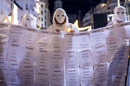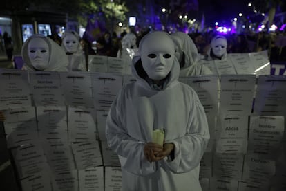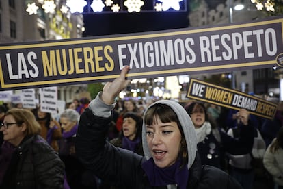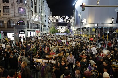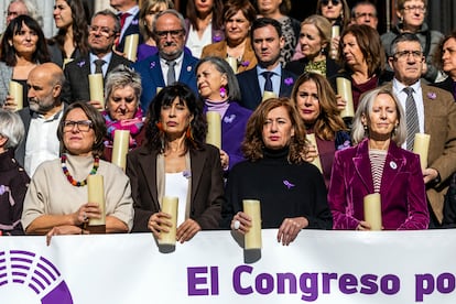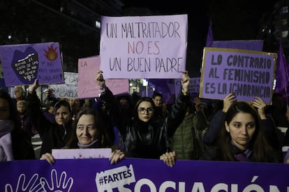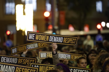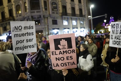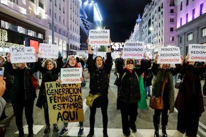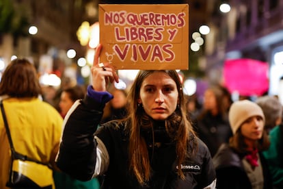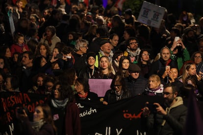 Varias mujeres sostienen una pancarta en la cabecera de la manifestación del 25N convocada por Foro 25N Movimiento Feminista de Madrid, este martes. Samuel SanchezMarcha del 25N este martes en Barcelona. ALBERT GARCIAManifestantes en Sevilla, este martes. Alejandro RuesgaUn grupo de mujeres sujetan pancartas pidiendo la dimisión de la ministra de Igualdad Ana Redondo, durante la manifestación del 25N convocada por Foro 25N Movimiento Feminista de Madrid, este martes. Samuel SanchezPancartas en la manifestación del 25N convocada por Foro 25N Movimiento Feminista de Madrid, este martes. Samuel SanchezUna chica sostiene una pancarta en la cabecera de la manifestación del 25N convocada por Foro 25N Movimiento Feminista de Madrid, este martes. Samuel SanchezManifestación del 25N convocada por Foro 25N Movimiento Feminista de Madrid por el Día Internacional de la Eliminación de la Violencia contra la Mujer, este martes. Samuel SanchezManifestación del 25N en Valencia, convocada por la Assemblea Feminista València y Comparsa, este martes. MÒNICA TORRESCarteles con los nombres de mujeres víctimas de violencia machista durante la manifestación del 25N en Valencia. Mònica TorresLectura del manifiesto al final de la protesta en Sevilla.Alejandro RuesgaUna joven sujeta una pancarta en la marcha del 25N convocada por Comisión 8M, este martes en Madrid. Carlos RosilloManifestación del 25N en las calles de Santiago de Compostela. OSCAR CORRALMarcha por el Día Internacional de la Eliminación de la Violencia contra la Mujer, este martes en Sevilla. Alejandro RuesgaManifestación del 25N en Valencia, convocada por la Assemblea Feminista València y Comparsa, este martes en Valencia. MÒNICA TORRESVarias ministras y cargos públicos del PSOE, en una de las pancartas de la manifestación del 25N convocada por Foro 25N Movimiento Feminista de Madrid.Samuel SanchezPancartas en la manifestación del 25N convocada por Foro 25N Movimiento Feminista de Madrid, este martes. Samuel SanchezCabecera de la manifestación del 25N convocada por Comisión 8M. En la imagen, Ione Belarra, secretaria General de Podemos, saluda a la activista Boti García, este martes en Madrid. Carlos RosilloMarcha del 25N en Valencia, por el Día Internacional de la Eliminación de la Violencia contra la Mujer, convocada por la Assemblea Feminista València y Comparsa, este martes. MÒNICA TORRESMarcha por el Día Internacional de la Eliminación de la Violencia contra la Mujer, este martes en Barcelona. Albert GarciaLa ministra de Igualdad, Ana Redondo, en la manifestación del 25N convocado por Foro 25N Movimiento Feminista de Madrid, este martes en Madrid. Samuel SanchezManifestación del 25N en Valencia, convocada por la Assemblea Feminista València y Comparsa, este martes en Valencia. MÒNICA TORRESEl presidente del Parlament de Catalunya, Josep Rull; el 'president' de la Generalitat, Salvador Illa; la consellera de Igualdad, Eva Menor, y el 'conseller' de Presidencia, Albert Dalmau, durante la celebración de un acto por el día de la Eliminación de la Violencia contra la Mujer, este martes.David Zorrakino (Europa Press)Acto en el Congreso de los Diputados presidido por Francina Armengol, que consiste en un coloquio entre la jueza especializada en violencia de género, Ciro García, y la referente en la lucha contra la violencia de género, Nevenka Fernández, moderado por la periodista Ana Requena, y la presencia de la ministra de Igualdad, Ana Redondo, este martes en Madrid. Samuel SánchezEl Parlamento de Navarra y el instituto Iturrama se unen en un acto contra la violencia hacia las mujeres.Miguel Oses (AFP7/Europa Press)Varios diputados participan en la lectura de nombres y encendido de velas por cada mujer asesinada por violencia de género en este año con motivo del Día Internacional para la Eliminación de la Violencia contra las Mujeres, este martes, en la escalinata del Congreso de los Diputados en Madrid.El Ayuntamiento de Barcelona y entidades sociales han desplegado esta mañana una pancarta con motivo del 25N en el balcón del consistorio para decir 'Basta' a las violencias machistas digitales, en una jornada reivindicativa y de denuncia ante la persistencia de esta lacra.Andreu Dalmau (EFE)
