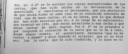 Pero una vez que el juez le lee el contenido de las cartas, Lecquió alega cuestiones como que “las peleas son recíprocas y se tiran mutuamente objetos” o “que hace muchos años y ya no puede recordar lo que dijo ni lo que pasó” o que “en la relación de pareja existen momentos desavenencia” y que “lo explica en todo caso en lo que denomina liturgia del amor”.