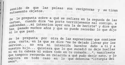 Y otro extracto aparece: “Antonia, me he vuelto a equivocar. Me he dejado llevar por los nervios. Te aseguro que no era mi intención y nunca lo será haceros daños a ti y a nuestro hijo. Te amo. Quisiera que tú olvides lo que ocurrió ayer noche. […] Te lo repito, olvida; yo, es cierto soy nervioso y algunas veces reacciono del peor modo posible. Estoy arrepentido”.