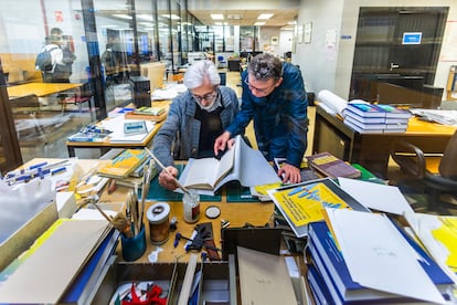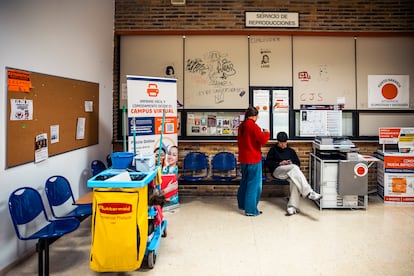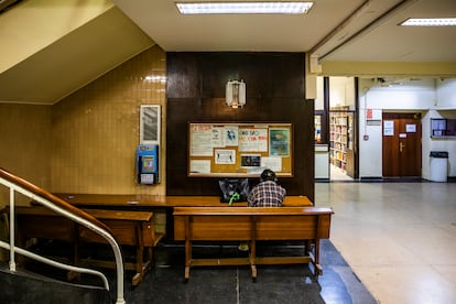 José Antonio Magán, director de la biblioteca de la facultad de Matemáticas, contaba la historia esta semana sin forzar la voz, mientras paseaba bajo la lluvia por la avenida Complutense: “Hace más de diez años, yo participaba con colegas de Harvard y de Oxford en un proyecto para digitalizar fondos sufragado por Google. Ellos los suyos. Nosotros los nuestros. La biblioteca de la Complutense es la segunda mayor de España, después de la Nacional. Y así logramos digitalizar casi 150.000 libros del siglo XIX. Pero a partir de 2018, como ya no había personal para catalogar y seleccionar los libros, hemos dejado de acudir en ese programa. Ya no vamos con Harvard ni con Oxford”. Y luego, con la misma voz neutra, bajo la misma lluvia pesada, añadía: “Es más: desde ese año, junto con mis compañeros de la facultad de Matemáticas, apañamos y arreglamos con pasta de cola y tijeras los manuales rotos de nuestra biblioteca porque ni siquiera tenemos fondos para reponerlos. Lo mismo hacemos con los sillones”.
