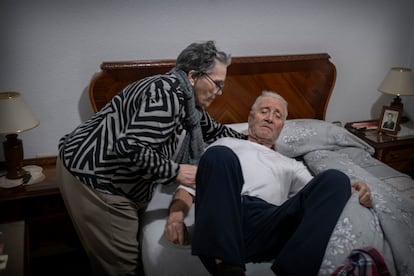 Carmen y Francisco, en su cama. Para descansar mejor, Carmen comenzó a dormir en otra habitación, algo que no había hecho nunca. Pero lo primero que hacía al levantarse era acercarse a Francisco y tumbarse junto a él durante unos minutos.PACO PUENTES