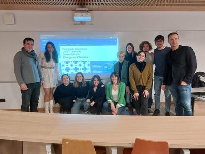 En su primer curso se matricularon 15 alumnos, entre los que se contaban varios estudiantes de grado, de Economía, Derecho o Comunicación, y profesionales consolidados mayores de 50 años: “De aquí salen consultores de sostenibilidad que pueden trabajar para una empresa o montar la suya propia. Auditores especializados en la elaboración de informes de compromiso contra el cambio climático, por ejemplo, o en compra pública verde. El empuje de la UE está creando una gran demanda”, añade Mélon. La UE estima en un 0,5% el crecimiento anual de su PIB en 2030 gracias a la profesionalización y desarrollo de la economía circular.