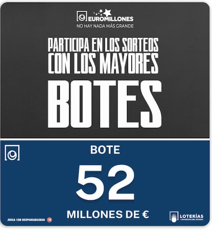 El sorteo de Euromillones de este viernes se juega por un bote de 52 millones de euros