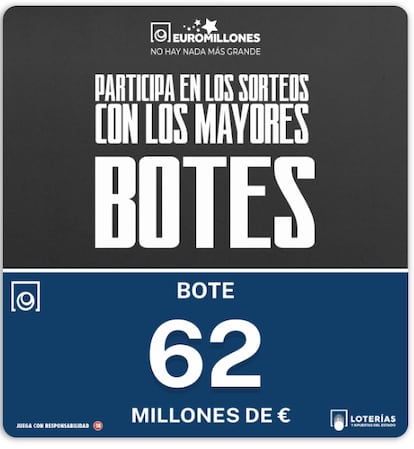 El sorteo de Euromillones de hoy se juega por un bote de 62 millones de euros